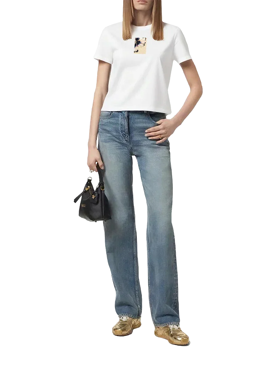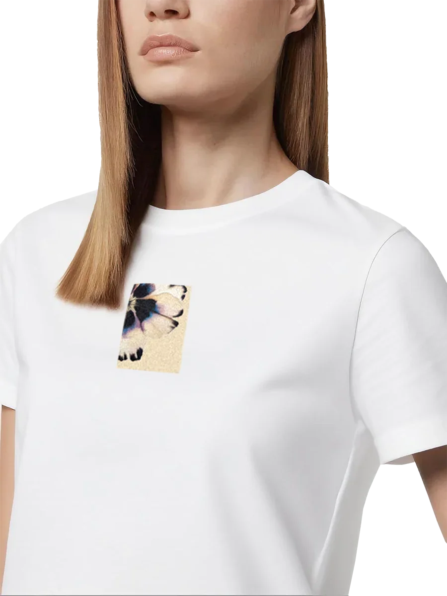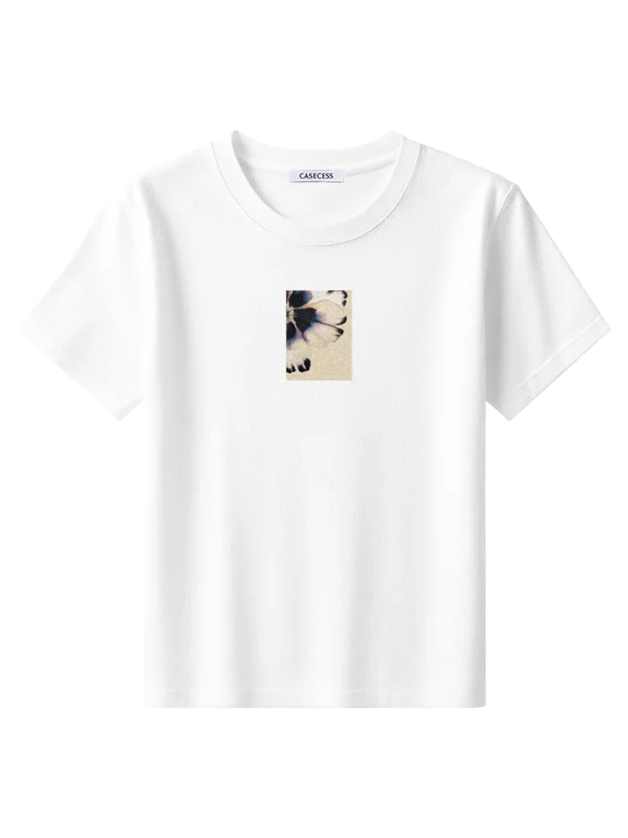 This slim-fit, cropped tee is crafted from a soft cotton blend for a lightweight, breathable feel that moves with you. Featuring a floral chest print from the Poppy Twirl collection, the hand-drawn illustration is applied using eco-conscious digital printing — blending art, nature, and sustainability into your everyday style.